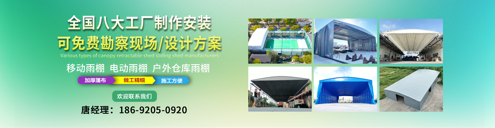 湖南鑫建華鋼結(jié)構(gòu)工程有限公司是一家電動雨棚、膜結(jié)構(gòu)車棚研發(fā),生產(chǎn)銷售,施工安裝于一體的專業(yè)鋼結(jié)構(gòu)科技公司,主要產(chǎn)品有伸縮雨棚,電動雨棚,膜結(jié)構(gòu)車棚等。 湖南地區(qū)職員目前有200多人,自建廠房15600平方米,配備先進的生產(chǎn)流水線,使每件品質(zhì)產(chǎn)品的堅實基礎(chǔ)。 公司在衡陽,蘇州,天津,濟南,鄭州,江門,佛山,武漢,重慶均設(shè)有服務工廠,擁有專業(yè)的技術(shù)團隊,配備先進的設(shè)備和流水線生產(chǎn),產(chǎn)能高,貨源充足,發(fā)貨速度快,服務區(qū)域廣。 移動伸縮棚適用于通道臨時倉儲、戶外運動遮陽、污水池遮蓋、能源交通、熱力化工、礦山、船舶制造及市政建設(shè)、物流、碼頭等領(lǐng)域的構(gòu)件制作加工,成品半成品存放、倉庫、野外儀器設(shè)備操作用房等。尤其是對工廠發(fā)貨、倉儲臨時遮雨防嗮,梅雨期較長、建設(shè)周期較短的工程施工等特別適用。還可根據(jù)用戶需求量身定制、適合企業(yè)所需不同款式的產(chǎn)品。 我公司堅持“誠信社會為本,客戶滿意為榮”的經(jīng)營理念,做到質(zhì)量把控,嚴格管理,精益求精,恪守承諾。使鑫建華逐步走向成熟,其系統(tǒng)化、專業(yè)化日趨完善。以專業(yè)的技術(shù)、科學的管理,更高的產(chǎn)品質(zhì)量,優(yōu)良的企業(yè)信譽,真誠的客戶服務,靈活多樣的經(jīng)營方式和務實創(chuàng)新的企業(yè)精神愿與社會各界攜手合作,為推動智能鋼結(jié)構(gòu)建筑事業(yè)的發(fā)展而不斷努力。...